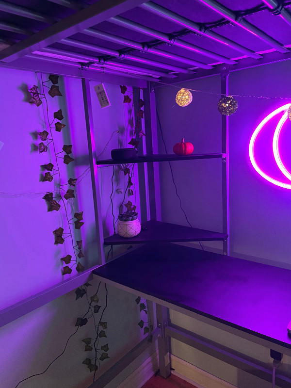 Double loft bed. Metal frame, with built in desk underneath Beds